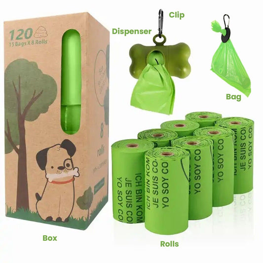 120 Scented Biodegradable Dog Poop Bags 8 rolls with Dispenser and Bag Holder
