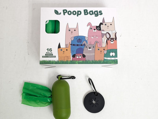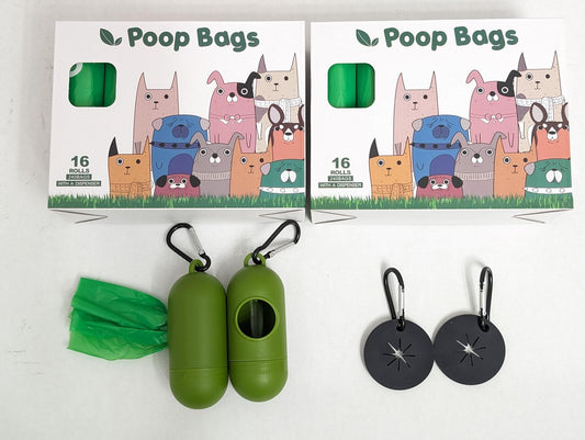 30 Biodegradable Dog Waste Bags with Dispenser and a Bag Holder, 2 Green Rolls of Doggie Waste Bags