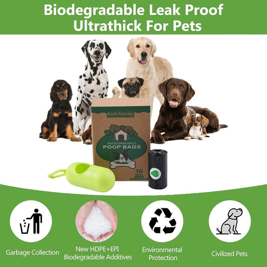 10 Rolls of Biodegradable Dog Waste Bags with Dispenser and Bag Holder, 150 Doggie Waste Bags