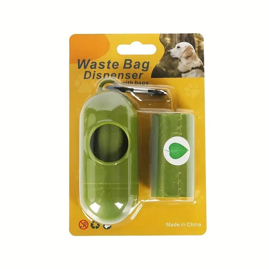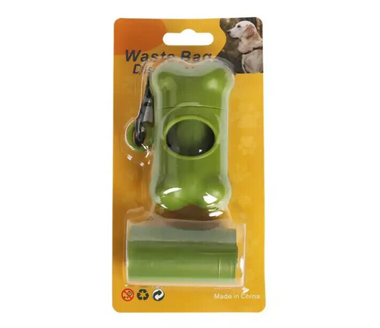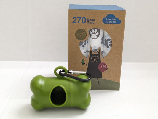 30 Biodegradable Dog Waste Bags with Green Bone Shaped Dispenser and a Bag Holder, 2 Green Rolls of Doggie Waste Bags