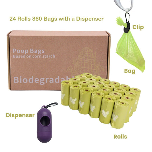 24 Rolls of Dog Poop Bags with Dispenser and Bag Holder, 360 Scented Dog Waste Bags
