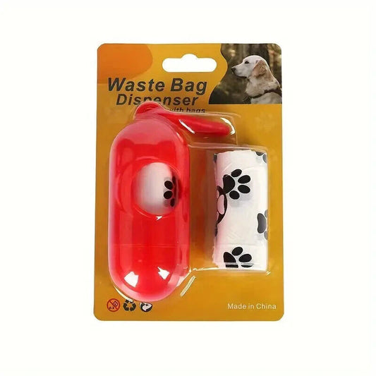 30 Biodegradable Dog Waste Bags with Red Dispenser and a Bag Holder, 2 White Rolls of Doggie Waste Bags